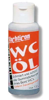 Maže in ščiti, vzdržuje vse vrste gumi tesnil, cevi, povezav v wc-ju. Odstranjuje in prepreči nabiranje oblog od morske vode na cilindru črpalke, semeringu, ventilih, itd. Wc olje je svetovno priznano, poznano med navtiki, camperji, caravaning, avtodomi itd., zato je primerno tudi za električne in prenosne wc-je. Receptura wc-olja bazira iz naravnih olj, je okolju prijazno in razgradljivo. Ne maže in ne ustvarja črnih madežev!