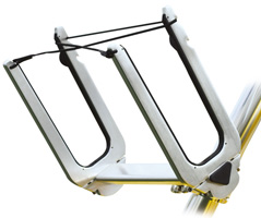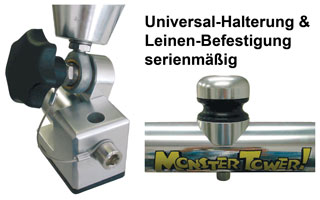 Quick priključek za hitro montažo in demontažo, materiali iz nerjavečega jekla, kot sta aluminij in polirano nerjaveče jeklo, gumirani O-obročki. Material je popolnoma zavit, da vilice zaščitijo deske. Primeren za 2 wakeboarda, za stolp s 6, 35 cm v premeru (z neobvezno Universalkit stojalo, primerna za vse Tower 3,81-6,35 cm dia.)