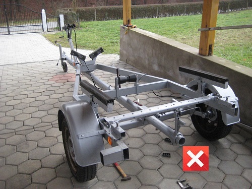 Klasičen primer prikolice, ki pomeni slabo volju pri transportu. Močna obremenitev centralnega valjčka.
