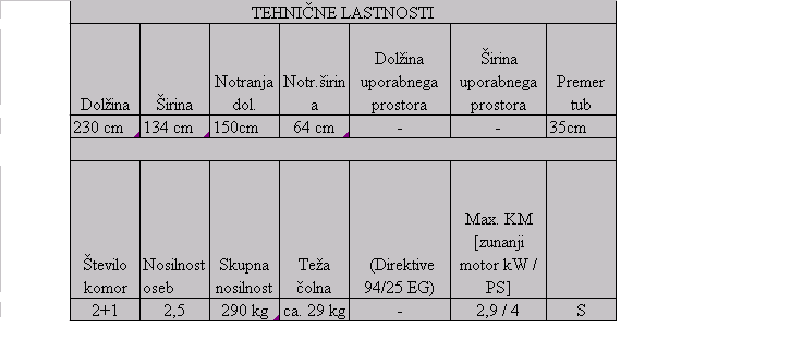 Tehnične lastnosti gumenjaka: