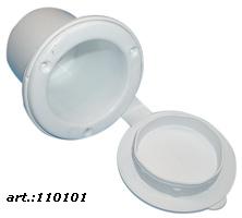Okrogli montažni nosilec za prho: Elegantna okrogla rozeta s pokrovom. Barva: bela, kar je idealno za zgornji omenjeni tuš. Zunanji premer: 88 mm, vgradni premer: 66 mm (art 110104).