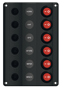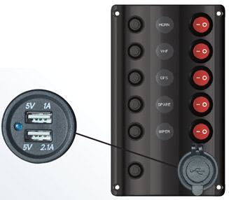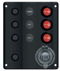 Stikalo plošča "Wave" lep dizajn, zasnovo v 6 različnih izvedbah, odvisno od modela z 12 V vtičnico ali USB. Vklj. varovalkami in imeni, LED zaslon, barva: črna, IP 65, 12 V.