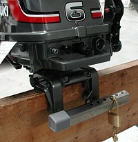 Z inoks artiklom, ki ima luknje, objamete del na motorju, kjer se privije na gumenjak; nato skozi luknjo napeljete ključavnico in zaklenete!