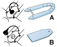 slika B: z odprtim ventilom napihujemo s 1,5 litra-volumna en stisk, za napihovanje napihljivega dna gumenjaka do 1,0 bar (1000 mbar / 14,7 psi)