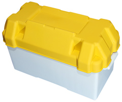 Zelo kompaktna škatla za vse vrste kislinskih, gel in AGM akumulatorjev moči 80 Ah in 100Ah. Box je kislinsko zaščiten, na pokrovu ima prostor za priključna kabla, dodatno je priložen pas z avtomatsko sponko za varno zapiranje škatle.