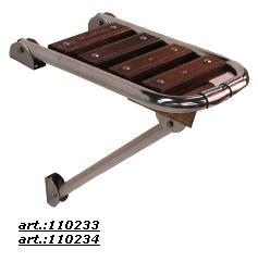 Ploščad iz niro, kombinacija marine-les. Kompakna platforma za manjša plovila ali kot kombinacija za premec plovila. Z malo spretnosti se da enostavno zmontirati na premec gumenjaka ali podobno plovilo. Vse ploščadi so brez stopnic.