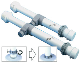 Na mizo se lahko pritrdi deska za mizo s pomo?¨jo rozete, v katero se enostavno privije noga s samo enim obratom. Na voljo sta dve rozeti, zgornja za mizo in spodnja za v tla.